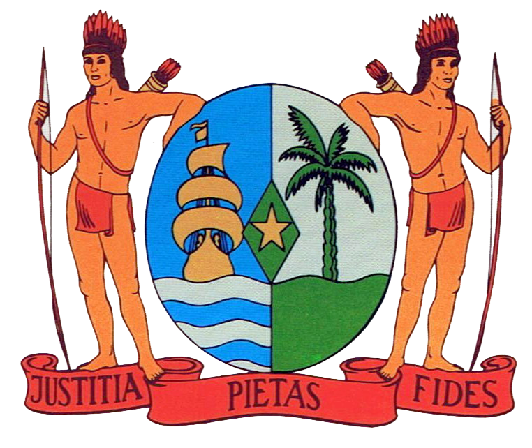 Además de Bélice, jamaica, sanvicente y granadinas, el escudo de Surinam, es el único que ostenta humanos,